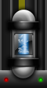 This features a futuristic device with an oval-shaped energy module. This module is filled with blue energy, and it appears to be the central focus of the scene. On either side of the device, there are light indicators that provide information about its function or status. These lights add to the overall visual appeal of the image, making it appear more advanced and sophisticated. The combination of the oval-shaped energy module and the light indicators creates a sense of modern technology and innovation.