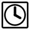 This features a black and white clock with the hands on the numbers 12 and 3. The clock is positioned in the upper left hand corner of the image, taking up most of the space. The clock's face is surrounded by a square frame, giving it a distinctive appearance. This clock could be used as an icon or symbol for time-related concepts or applications.