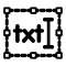 This features a square with the word "text" written in it. The letters are black and white, creating a contrasting appearance. The square is surrounded by a larger border, which further emphasizes the word "text." This design could be used for various purposes such as a logo or an artistic piece that incorporates text into its visual elements.