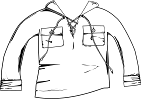 This features a black and white drawing of a jacket, likely representing the Shomrit - Hashomer Ha'tsair organization uniform. The jacket is open, revealing its interior with various pockets and straps. There are two zippers on the front, one near the center and another towards the right side. Additionally, there are three buttons visible in the drawing, one at the top left corner, another at the bottom left corner, and the third one is located slightly to the right of the middle area. The overall design gives a sense of organization and functionality for the wearer.