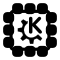 This features a black and white square with a large K in the center. This letter is surrounded by several smaller circles, creating an intricate pattern around it. The overall design of the image gives off a vintage or retro feel, making it visually appealing.