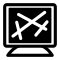 This features a black and white computer monitor with two crossed lines on it. These lines are placed in the center of the screen, creating an interesting visual effect. The overall appearance of the monitor is simple yet intriguing due to the presence of these lines.