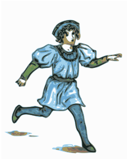 This features a hand-drawn illustration of a person, possibly a man or a boy, wearing blue clothing and running. The figure appears to be in motion, with one leg raised off the ground as it moves forward. The drawing is done in a colorful style, giving it an artistic and lively appearance. The overall scene captures the energy and action of the person depicted in the image.