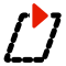 This features a red and white square with a red arrow pointing upwards. This design is reminiscent of an old-fashioned computer or video game icon, possibly representing a play button or a menu option. The square has a black outline, which further emphasizes the shape and adds contrast to the overall design.
