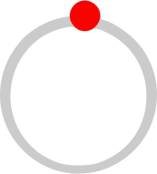 This features a red circle with a grey ring, which is placed on top of a white background. Inside the red circle, there are two small red dots, one located in the center and another towards the right side. The combination of these elements creates an interesting visual effect that draws attention to the central point of the image.