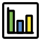 This features a square with several bars of different colors, including yellow, blue, green, and red. These bars are arranged in such a way that they create the appearance of a bar graph or chart. The bars are positioned vertically within the square, with each color representing a distinct data point. This unique design could be used as an icon for various purposes, such as representing data visualization or statistics.