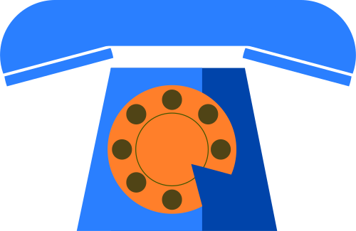 This features a blue and orange telephone with an oval-shaped dial pad. The dial pad is filled with small circles, each representing a number on the phone's keypad. The color scheme of the phone consists of blue for the background and orange for the dial pad. The overall design gives off a retro vibe, reminiscent of older telephone designs.