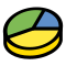 This features a colorful pie chart with various colors, including yellow, blue, green, and red. The pie is divided into four sections, each representing different percentages of the whole. The chart appears to be used as an icon or logo for a specific concept or idea. The vibrant colors and distinct segments make it visually appealing and easy to understand.
