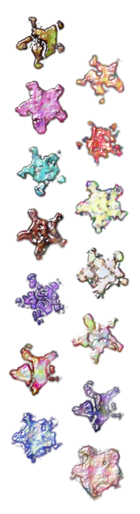 This features a row of twelve different colored star-shaped decorations. These stars come in various shades, including pink, purple, yellow, and orange. They are arranged neatly next to each other, creating an appealing visual display. Each star has a unique color, making the collection diverse and eye-catching. The arrangement of these decorative items suggests that they could be used for crafts or as part of a larger art project.