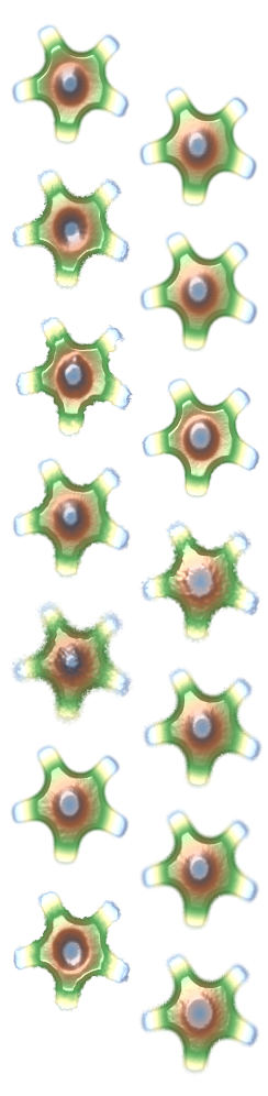 This features a row of small, round objects arranged in a neat line. These objects have a unique design and are likely made from ceramic materials. They come in various sizes and colors, creating an interesting visual effect. The arrangement of these objects on the screen suggests that they might be used for decorative purposes or as part of an artistic project. Overall, the image showcases a creative and visually appealing display of round ceramic objects.