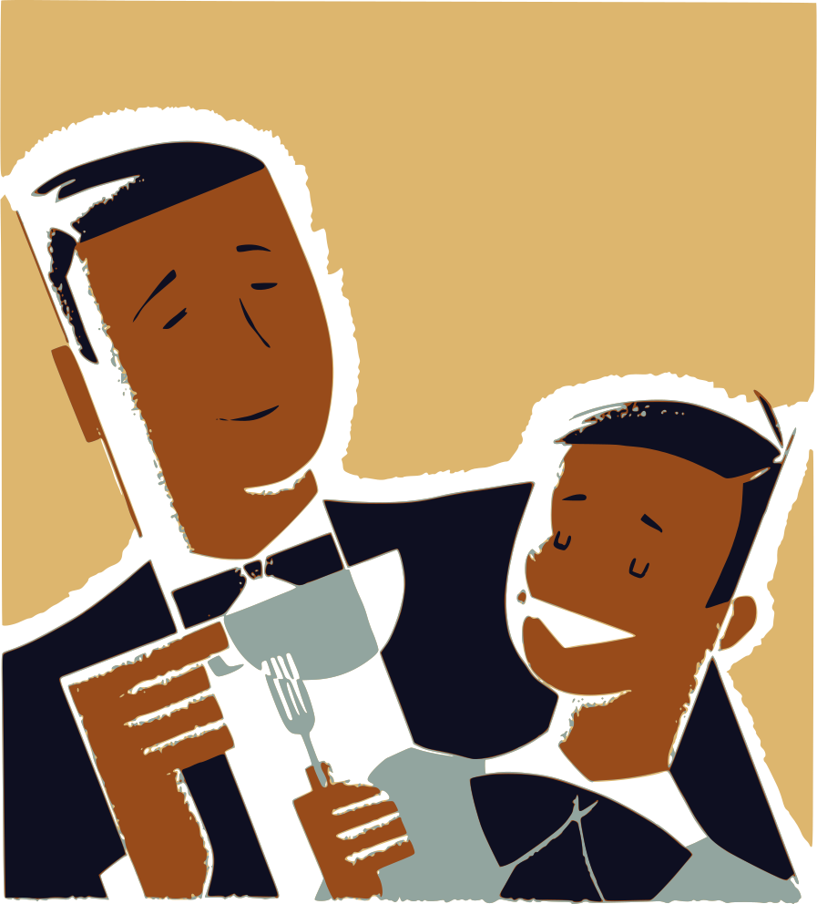 Tags: father, son, eating, meal, dad, daddy, kid, child, bonding, black, family, cartoon, father and son, dad and kid, humor