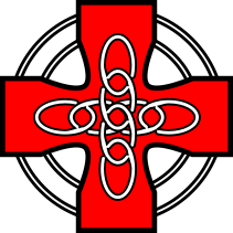 This features a red cross with a Celtic knot pattern in the middle of it. The red color is prominent and stands out against the white background, making the design visually striking. The intricate knot pattern adds an artistic touch to the cross, giving it a unique and eye-catching appearance. This combination of colors and patterns creates a powerful visual representation that can be appreciated by those who view it.
