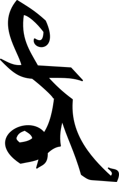 This features a black and white drawing of an ancient Egyptian symbol. This symbol is shaped like a person, with one arm raised in the air while the other arm is bent at the elbow. The figure appears to be standing on its own, giving it a unique and intriguing appearance. The contrast between the black and white colors adds depth and interest to the drawing, making it an eye-catching piece of artwork.