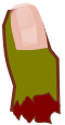 This features a green and brown finger with a cut in half. It appears to be a cartoon or comic-like representation of a finger, possibly depicting an injury or damage. The color scheme gives the finger a unique appearance, contrasting against the background. This creative portrayal could be used for various purposes such as artistic expression, storytelling, or even in educational materials to convey a concept related to fingers or body parts.