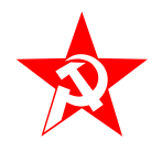 This features a red star with the hammer and sickle symbol in it. The star is prominently displayed, taking up most of the space within the frame. The hammer and sickle are white, contrasting against the red background of the star. This iconic symbol represents communism and has been used by various political parties throughout history.