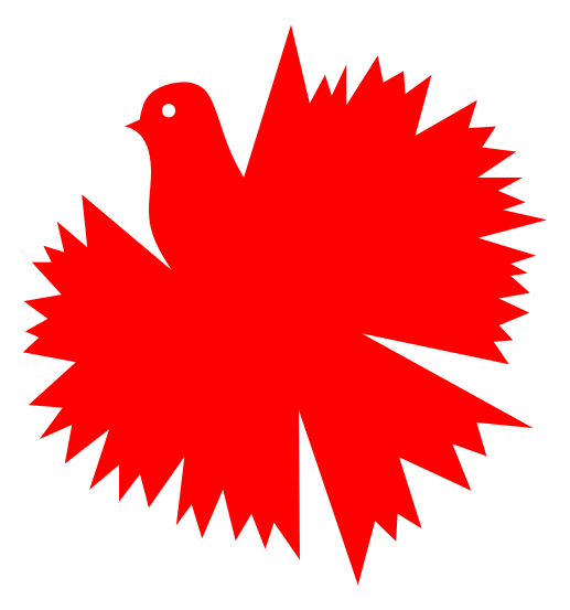 This features a red bird, possibly a dove or a robin, with an open beak. It is perched on top of a red heart-shaped design that resembles a flower. The bird's body occupies the majority of the space in the image, while its wings extend outwards from the center of the heart. The vibrant colors and unique shape make this an eye-catching and memorable design.