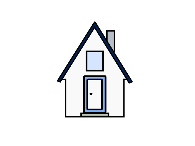 This features a small white house with a blue outline on the door. Above the door, there is a small window that adds to the charm of the home. On top of the roof, there is a chimney that complements the overall design of the house. This cozy little dwelling stands out against its surroundings and evokes feelings of warmth and comfort.
