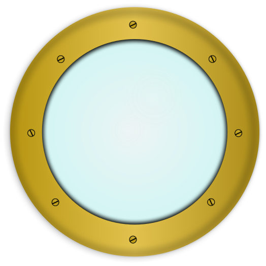 This features a round, blue-colored window with a golden frame. It appears to be part of a ship or some other type of structure, as it is described as a "ship window." The window has a black outline, which adds contrast and emphasizes its shape. The combination of the blue color and the golden frame creates an interesting visual effect that draws attention to this particular feature on the structure.