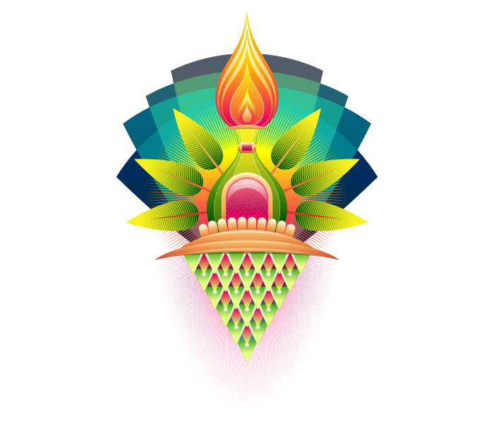 This features a colorful and intricate design, likely inspired by nature. It is an artistic representation of a flower or plant with vibrant colors such as yellow, green, pink, and orange. The design appears to be made up of multiple layers, giving it a three-dimensional effect. This unique piece of artwork could be used for various purposes like decoration, fashion accessories, or even as an illustration in a book or magazine.