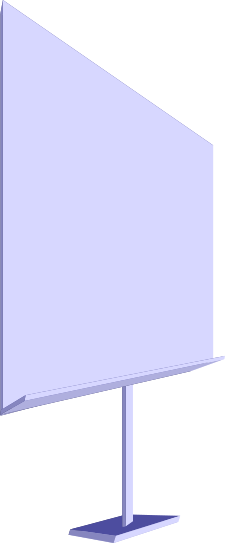 This features a large purple screen with a black outline, standing on its own in the foreground. It appears to be an electronic display or monitor, possibly used for presentations or other purposes. The screen is positioned at a slight angle and seems to be the main focus of the scene.
