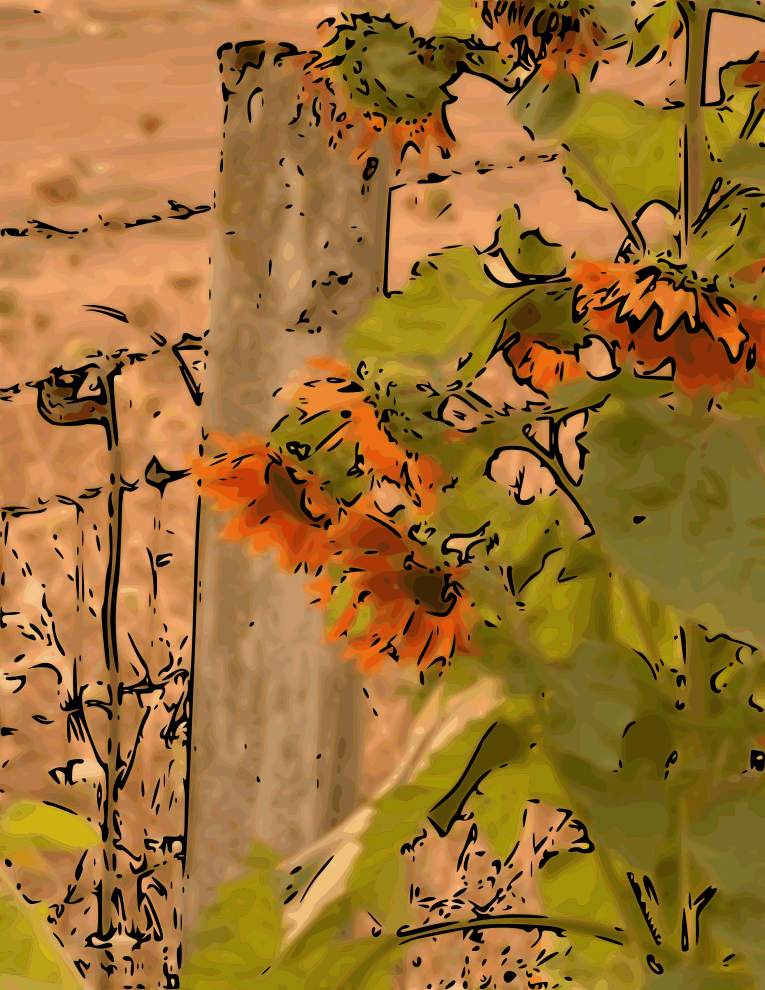 This is a completely free image Sunflowers and fencepost that you can download, post, and use for any purpose.