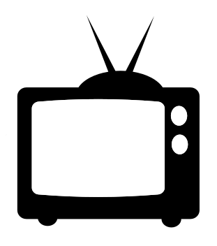 This features a black and white TV icon, which is an outline of a television set. It has two small legs on the bottom, giving it a more realistic appearance. The TV also has an antenna, which is a common feature for older televisions. This simple yet recognizable symbol represents a classic form of entertainment that many people have grown up with and continue to enjoy today.