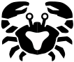 This features a black and white crab logo, which is an outline of a crab with its claws open. The crab's body is depicted in the shape of a heart, giving it a unique appearance. The crab's eyes are represented by two small circles, one on each side of the heart-shaped body. This creative design makes for an interesting and eye-catching logo that could be used for various purposes such as merchandise or branding.