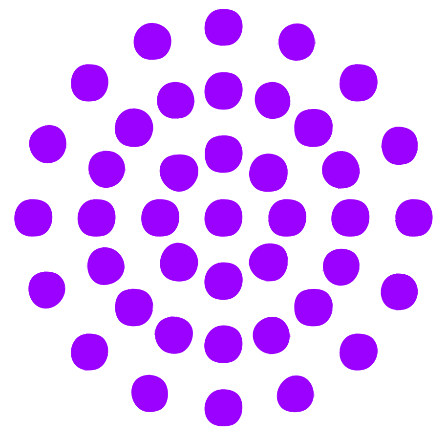 This features a large purple circle with numerous small purple dots arranged in various patterns. Some of the dots are located near the center, while others are scattered throughout the circle. The overall effect is an intricate and visually appealing design that showcases the beauty of these vibrant purple dots.