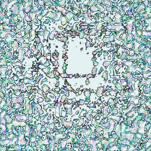 This is a close-up of an abstract, colorful design that resembles a piece of art. It features a central circle surrounded by various shapes and colors, creating a visually appealing pattern. The overall composition appears to be made up of many small squares or rectangles, each with their own unique hues and patterns. This intricate design gives the impression of being a part of a larger, more complex artwork.
