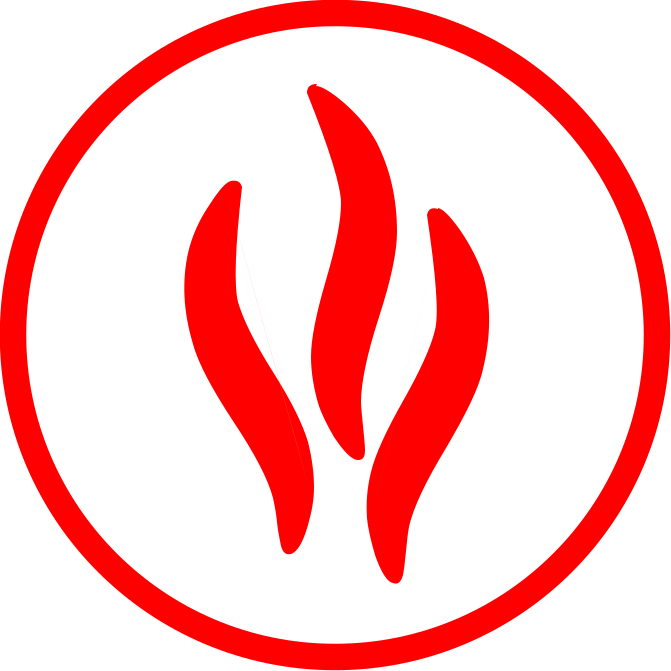 This features a red circle with three flames in the middle, which is likely an icon or symbol. The flames are arranged in such a way that they resemble a fire, and the overall appearance of the circle gives it a distinctive look. The red color of the circle adds to its boldness and makes it stand out against any background. This design could be used for various purposes, such as representing a company or organization related to fire safety, emergency services, or even artistic expression.