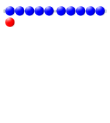 This is a white sheet of paper with blue dots scattered across it. There are seven blue dots in total, each varying in size and position on the paper. In addition to the blue dots, there is also a red dot located towards the left side of the paper. This combination of colors creates an interesting visual effect that could be used for various purposes such as art projects or educational materials.