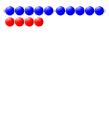 This is a white sheet of paper with blue and red balls arranged in rows. There are nine blue balls, each placed at the top of the row, and ten red balls, which are spread out across the rest of the row. The arrangement creates an organized and visually appealing display that could be used for educational purposes or as a decorative element.