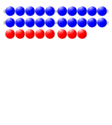 This features a white background with a row of blue and red balls arranged in a pattern. There are twelve blue balls, each one slightly larger than the other, and eleven red balls, which vary in size as well. The blue and red balls are placed next to each other, creating an interesting visual effect. This arrangement could be used for various purposes such as decoration or artistic expression.