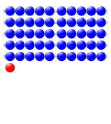 This features a white background with numerous blue circles scattered across it. Each circle is filled with a blue color, creating an organized and visually appealing pattern. In the center of this pattern, there is a red dot that stands out against the blue backdrop. This unique combination of colors and shapes makes for an interesting visual display.
