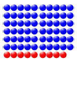 This features a large number of blue and red balls arranged in rows. There are twelve rows of blue balls, each row containing five balls, while the red balls are scattered throughout the scene. In total, there are 120 blue balls and 36 red balls. The arrangement creates an interesting visual effect that could be used for educational purposes or as a decorative element in various settings.