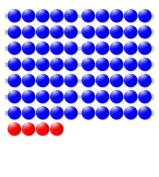 This features a large number of blue and red balls arranged in rows. There are twelve rows of blue balls, each row containing five balls, while the red balls are scattered throughout the scene. In total, there are 120 blue balls and 36 red balls. The arrangement creates an interesting visual effect with the contrasting colors of the blue and red balls.