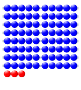 This features a grid of blue and red beads, with the majority being blue. There are three red beads in the middle of the grid, which stand out against the blue background. This arrangement creates an interesting visual effect that can help teach math lessons or simply serve as a decorative element. The blue beads are spread across the entire image, while the red beads are positioned centrally within the grid.