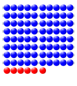 This features a large number of blue and red balls arranged in rows. There are twelve rows of blue balls, each row containing nine balls, while the red balls are scattered throughout the scene. In total, there are 108 blue balls and 24 red balls. The arrangement creates an interesting visual effect with the contrasting colors of the blue and red balls.