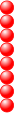This features a large number of red balls arranged in a row. There are at least 13 red balls visible, with some placed closer to the left side and others towards the right. The arrangement creates an interesting visual effect that draws attention to the colorful display.
