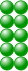This features a large number of green balls arranged in rows. There are at least 13 distinct groups of these balls, each varying in size and position. Some of the balls are placed closer to the top left corner of the image, while others are scattered throughout the middle and right side of the frame. The arrangement creates an interesting visual effect that draws attention to the green balls as the main focus of the scene.