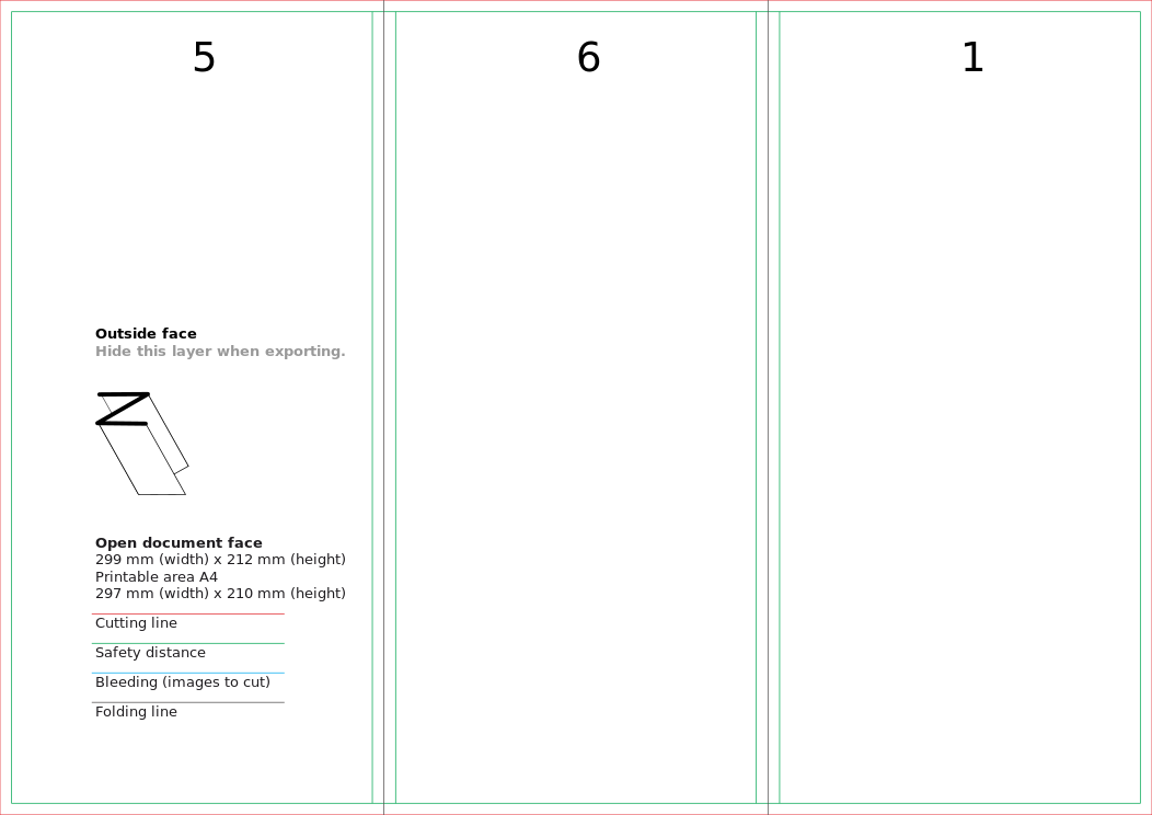 This displays a brochure with three sections, each marked by numbers. The first section is labeled "Outside Floor" and provides instructions on how to bend the brochure. This part of the brochure appears to be related to an open document or file. The second section is titled "Open Document Face," which likely refers to a different aspect of the document, such as its content or purpose. Finally, the third section is labeled "Open Document Floor," possibly providing additional information about the document's structure or organization. Overall, this brochure seems to be designed for users who need guidance on how to work with open documents and files.