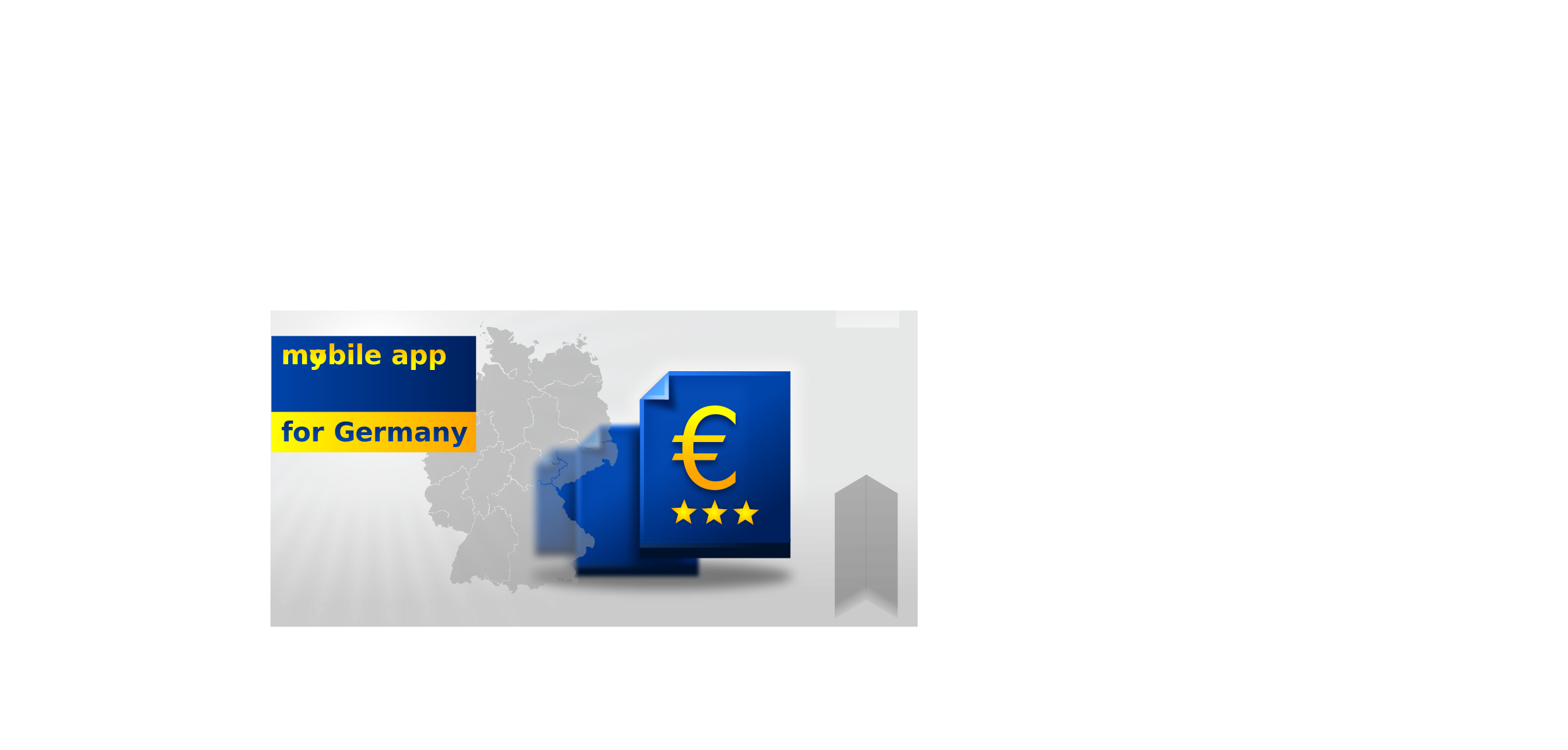 This features a poster with a mobile app logo and the words "mobile app for germany" written on it. Above the app logo, there is a map of Europe with several countries highlighted in blue. In addition to the map, there are two Euro symbols displayed prominently on the poster. The combination of these elements suggests that this image may be related to an advertisement or promotion for a mobile application targeting users in Germany and other European countries.
