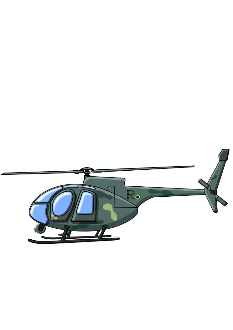 This features a green helicopter with the letter "R" on it. It is positioned in front of a brown background, giving it a contrasting appearance. The helicopter appears to be a cartoon or comic-style representation, adding an artistic touch to the scene.