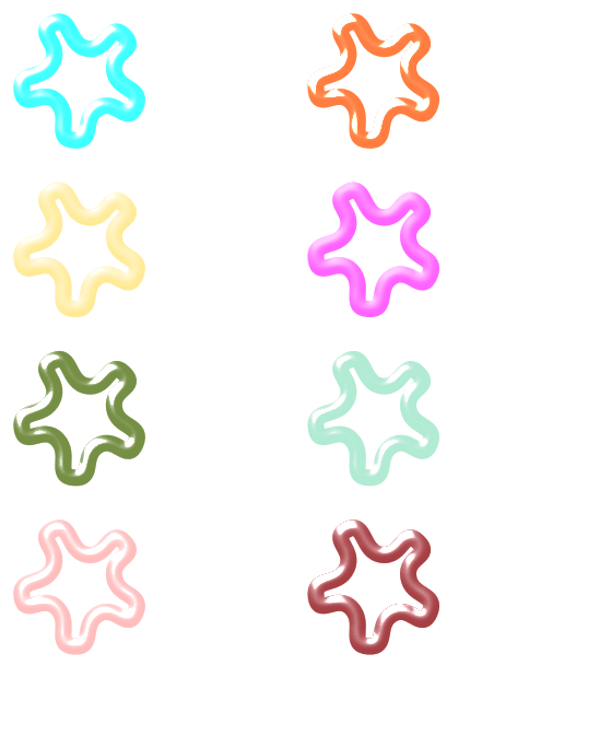 This features a collection of six different colored stars, each with varying shades and hues. These stars are displayed in a row on the screen, showcasing their unique colors and designs. They can be used for various purposes such as outlines, banners or small objects, making them versatile and functional. The stars are accompanied by their reflection-only versions, which can be placed on top of an unfiltered copy of the same object to create a more intricate design. These gels offer users the ability to add color and modify their appearance, providing endless possibilities for creativity and customization.