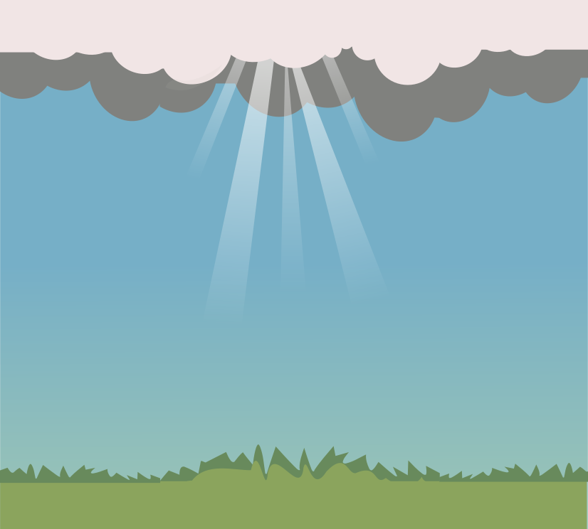 This features a beautiful scene of a cloudy sky with sunlight shining through it. The rays are illuminating the area, creating an interesting visual effect. Above this picturesque landscape, there is a field of green grass that adds to the serene atmosphere. This illustration captures the essence of nature and its beauty in the form of clouds and sunlight.