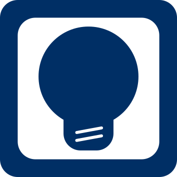 This features a square icon with a dark blue light bulb in the middle of it. The light bulb is prominently displayed, taking up a significant portion of the square's space. This design element creates an interesting visual contrast between the light bulb and the surrounding blue background.