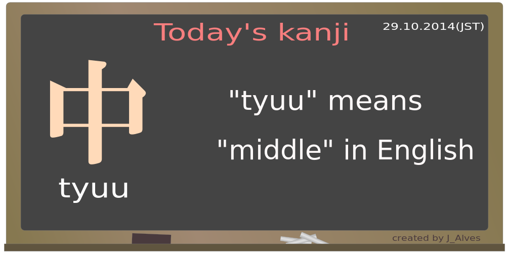 Tags: 1, chinese, chinese character, hanja, hanzi, kanji, middle, size, today's kanji, 29/10/2014, taiyuu, means "middle" in english.