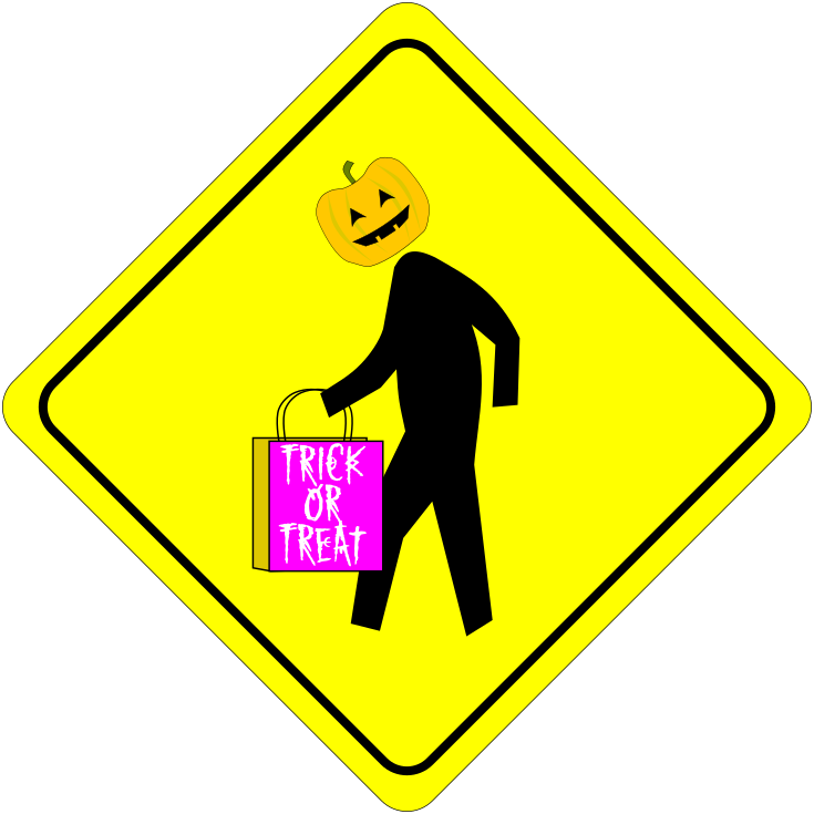 Tags: caution, halloween, pedestrian, sign, traffic, trick or treat
