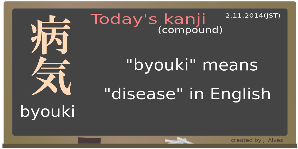 Tags: blackboard, chalk, chalkboard, education, school, today's kanji, compound, byoyoi, means disease in english