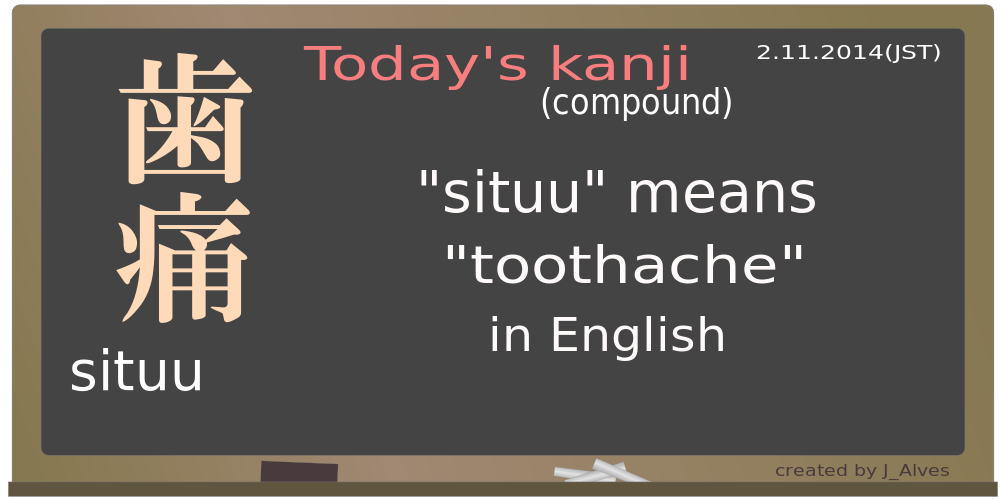 Tags: blackboard, chalk, chalkboard, education, school, today's kanji, compound, sitiu, toothache, english